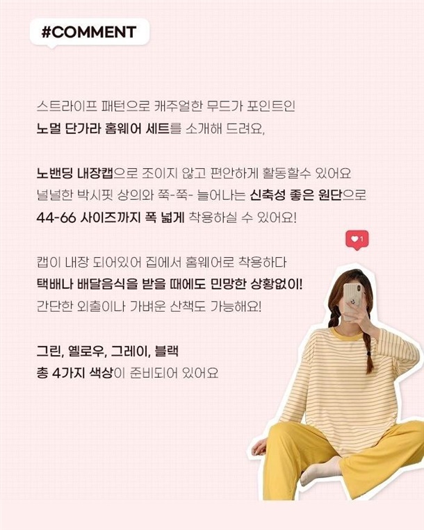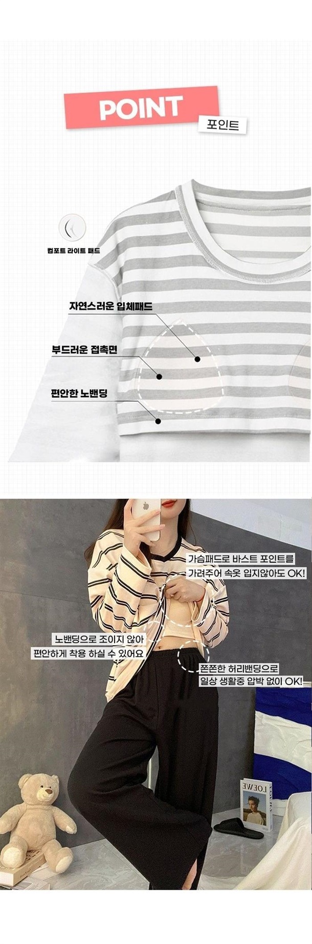 집에서 더욱 편안하게 입을 수 있는 홈웨어에요!