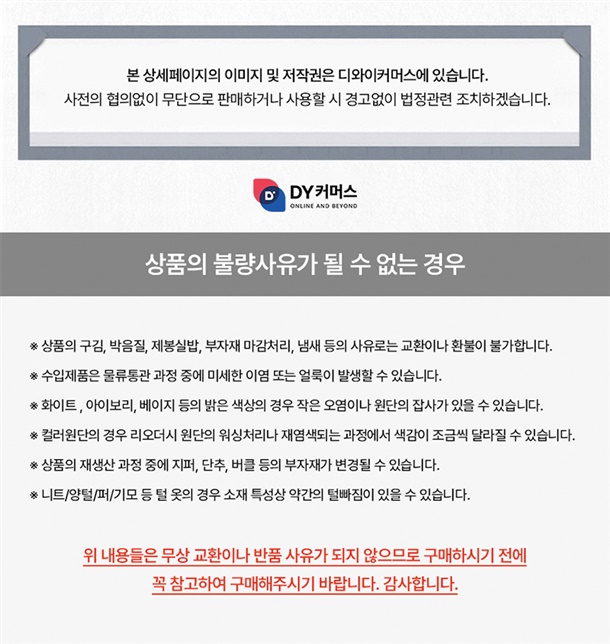 · 일부 상품에 대해서 교환/반품 정책이 위와 상이할 수 있습니다.