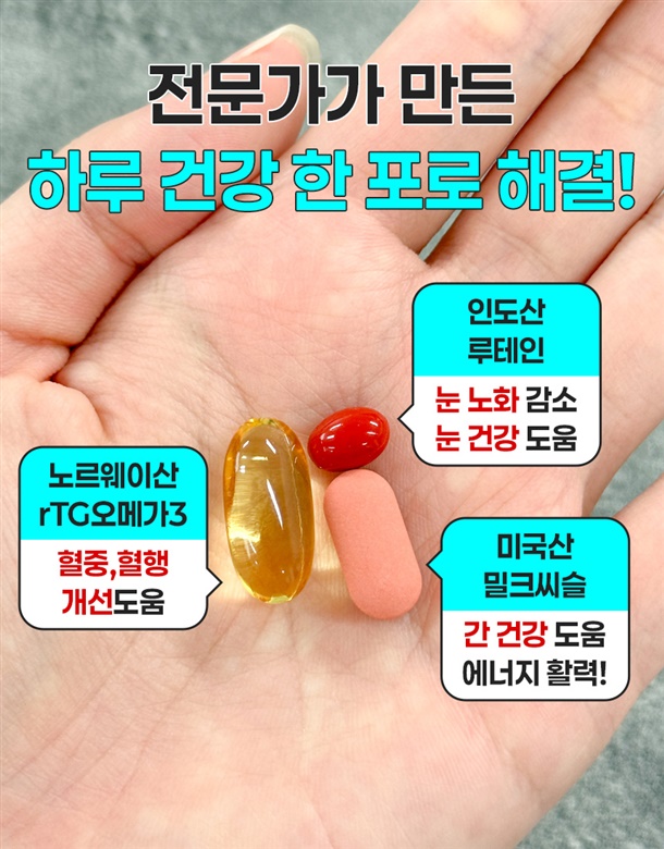 rTG오메가3와 밀크씨슬, 루테인이 1팩에 들어있어서