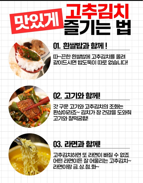 아삭 ! 감칠맛 일품인 고추김치 가져왔습니다!!